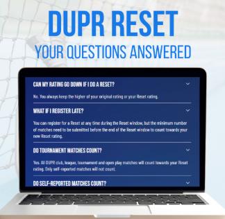 Here are a few additional details about the DUPR Reset: