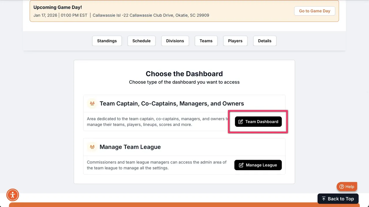 - 1. Confirm you’re on the Team Dashboard and have captain privileges.