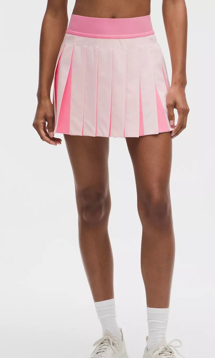 Color blocking is always popular in athleticwear, and I don’t think this is a trend that’s going away anytime soon. Lululemon just released a gorgeous color blocked pleated tennis skirt that takes the classic pleated skirt design and gives it more visual interest.