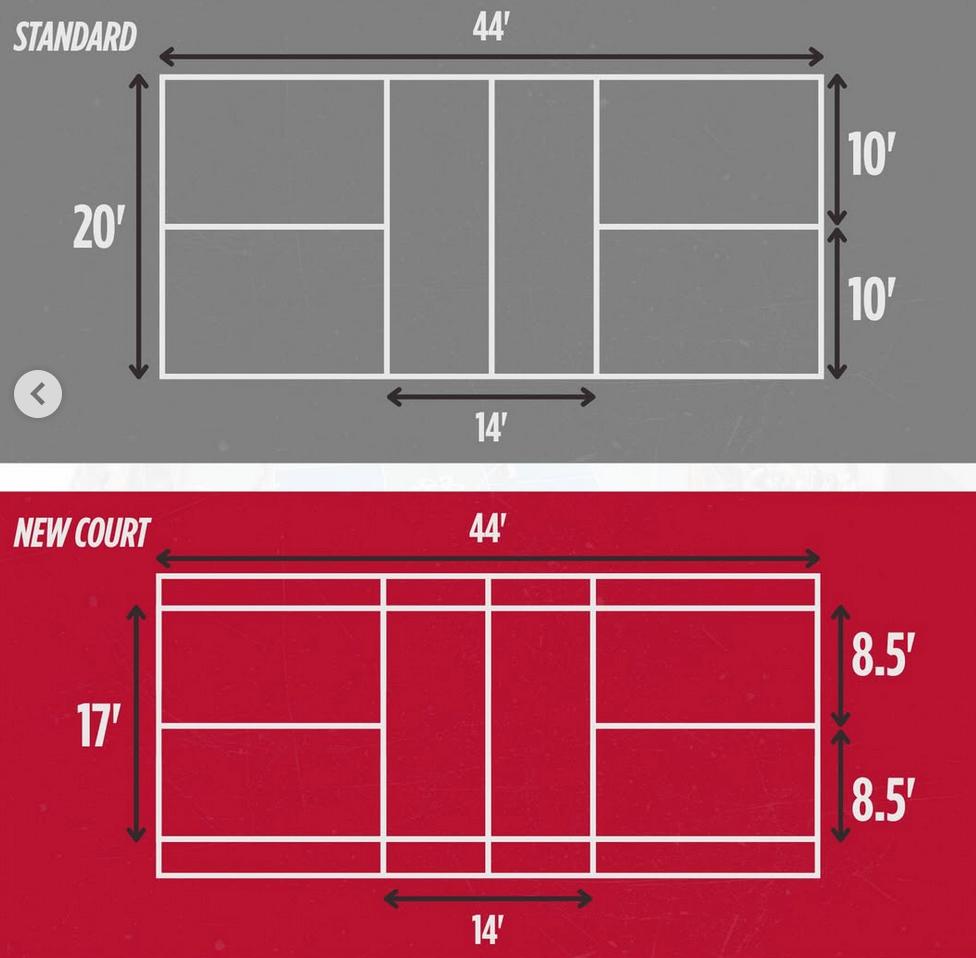 The new court dimensions will reduce the court width from 20 feet to 17 feet, bringing in the sidelines 1.5 feet on each side.